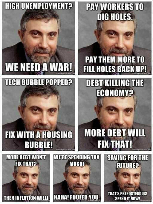 Desde sus púlpitos mediáticos y universitarios los economistas de la religión conocida como economía neoliberal o teoeconomía expanden su credo dogmático como antes hizo la iglesia sin tener demasiada idea de lo que realmente están hablando. Se mueven con la estadística como pez en el agua, toneladas de estudios avalan sus argumentos. Sin embargo nada funciona bien según ellos. Paul Krugman es Nobel de Economía, sus libros se siguen como bestsellers en las universidades, columnista del Washington Post, un Gurú para los coach y amigo de los vicios secretos. Sucesor de los Chicago Boys de Friedman, fue asesor de varios POTUS, del Tesoro y la Fed de EEUU, conferenciante, profesor universitario de Stanford, estrella de la tele, un crack. Uno de los arquitectos y adalides de la Economía contracíclica que se emplearía en 2008 cuando la economía cayó a plomo durante la Gran Recesión. Krugman se vuelve a equivocar, prácticamente en todo.